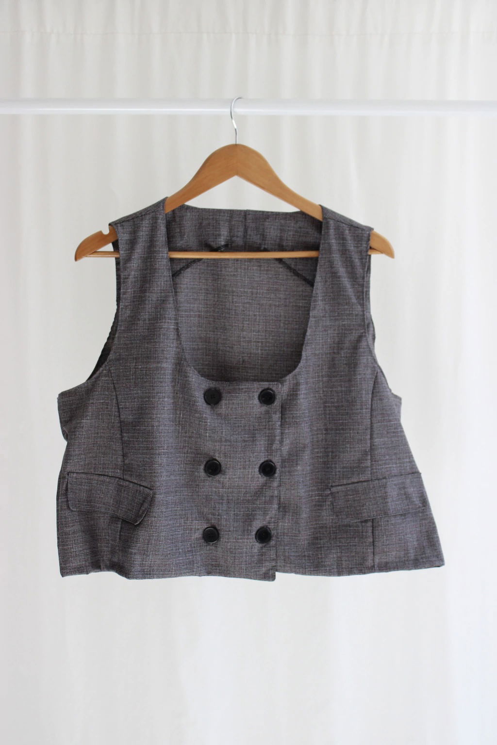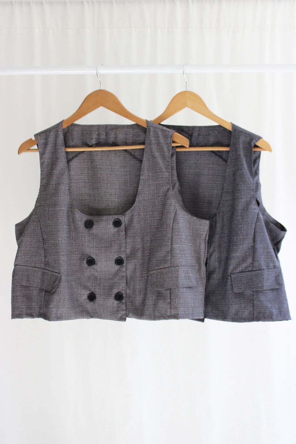 Descripcion: Chaleco cruzado con 6 botones y vista interna. Hace conjunto con el Maxi palazzo super wideleg.