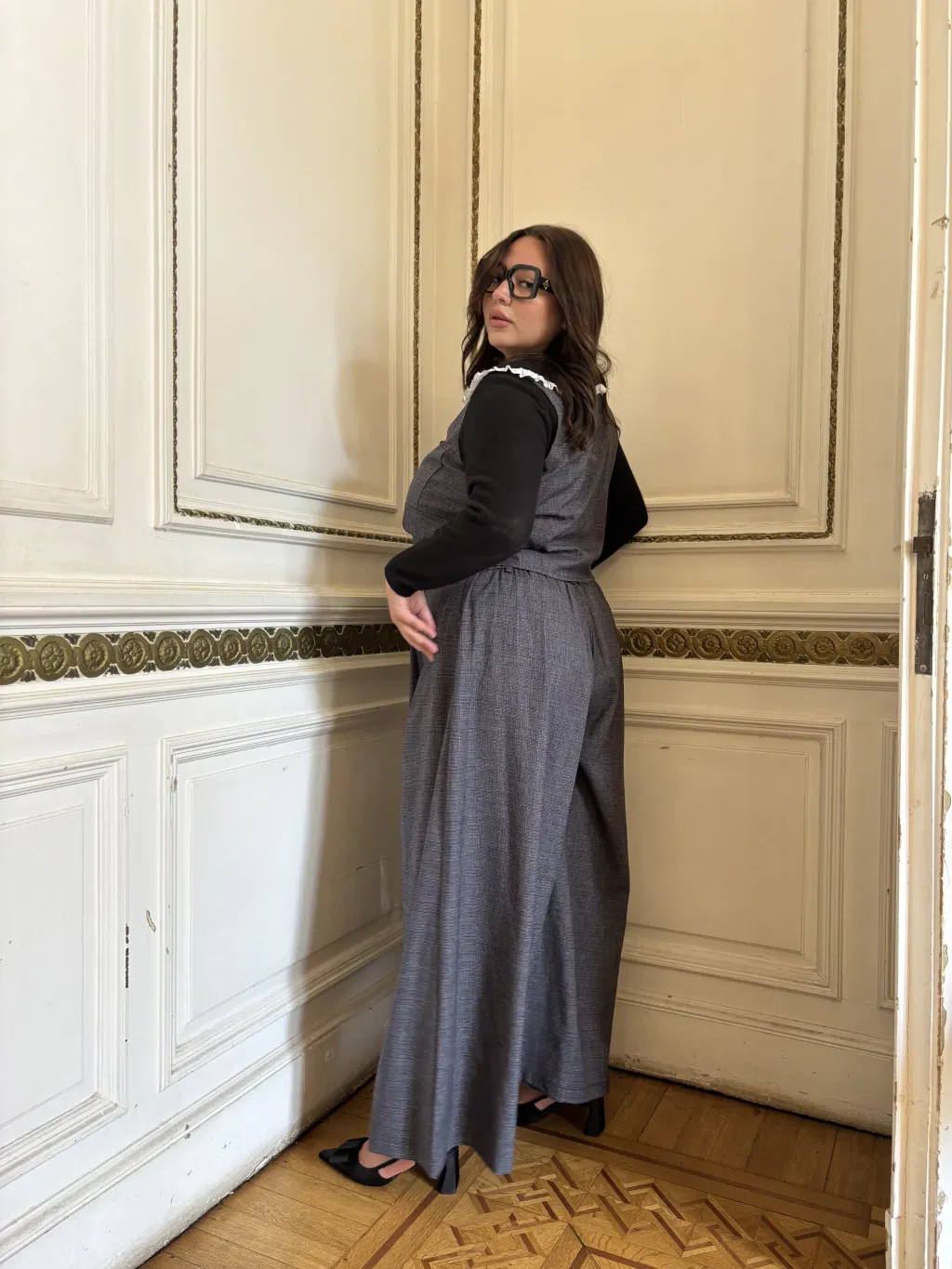 Descripcion: Maxipalazzo con pinzas encontradas en el delantero y elastico en la cintuta trasera. Hace conjunto con el chaleco cuadrille.