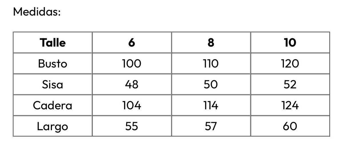 medidas sin estirar