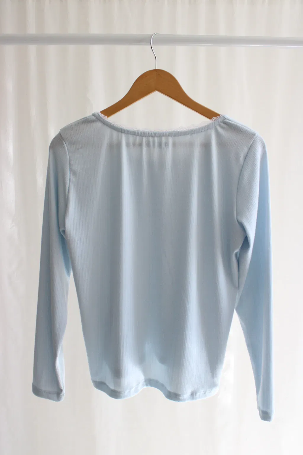 Descripcion: Remera manga larga con puntilla y moño en el cuello.